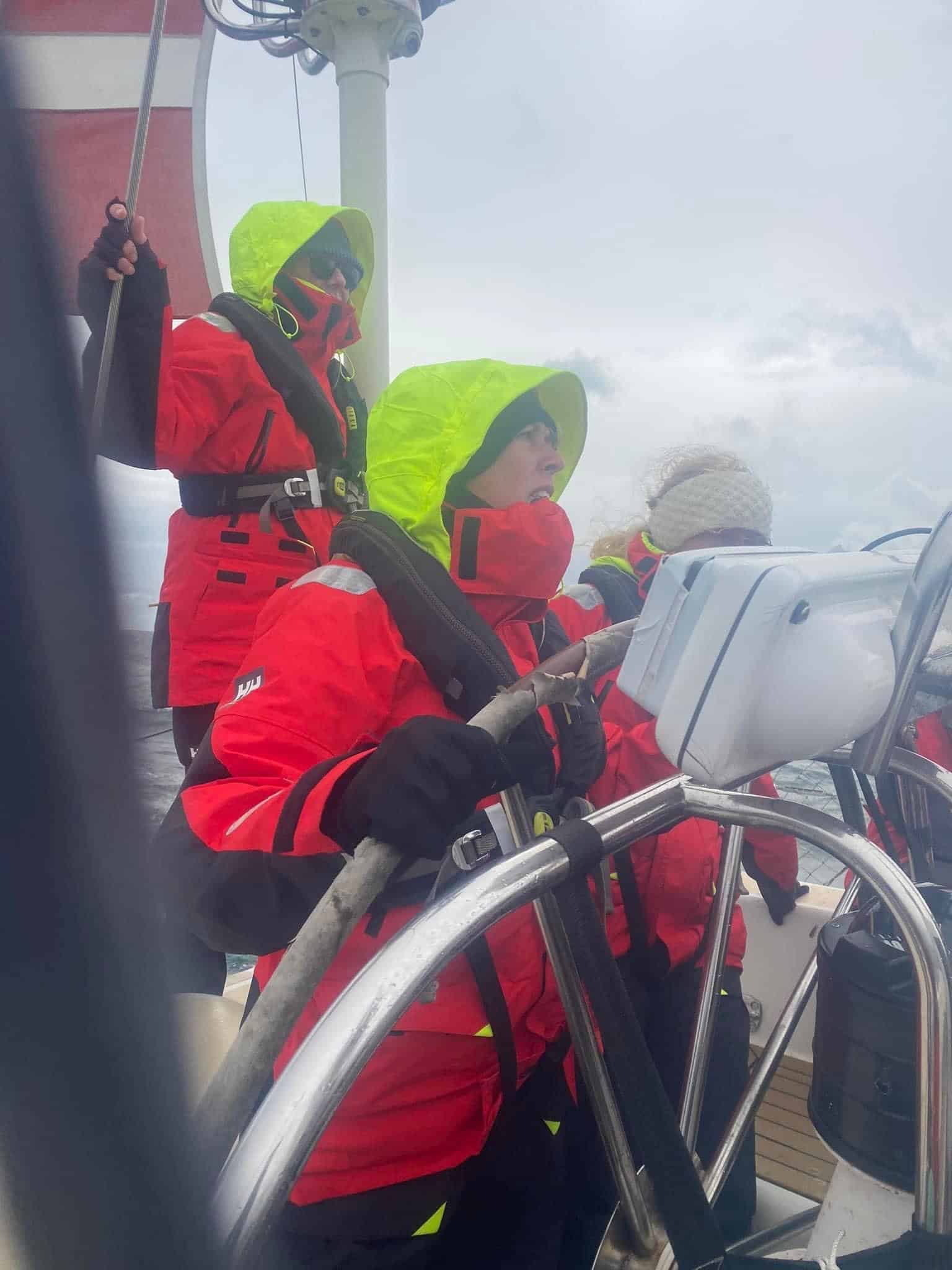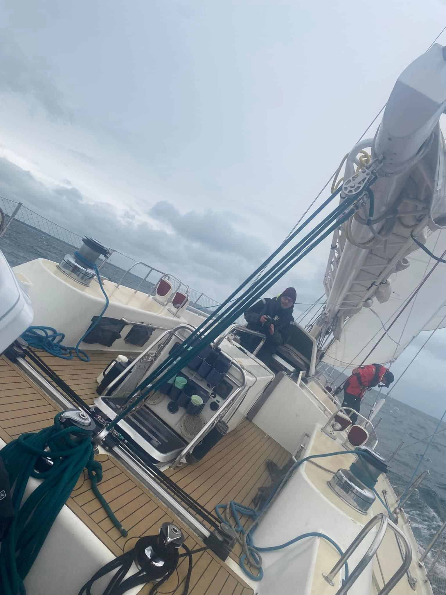 The sky is still grey and the wind is still blowing , after a quiet night without the squeaking noise that disturbed all of us the previous night (not due to a fender but due to a rope) it’s time to take the sea. I sent a video message to my friends showing the nice weather condition we were going to face and received a prompt reply from somebody in the Mediterranean commenting the grey sky against the blue one he was under. It’s a matter of point of view!