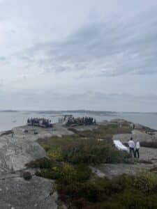 Øen Knippla er beliggende i Skærgården lidt nordvest for Göteborg, og er med sine klipper et rent naturvidunder. Havnen er populær hos både de lokale svensker og os turister, hvilket vi godt forstår. Øen har en smuk natursti, der fører dig igennem dens flotte klipper, men bliver åbenbart også brugt til andet. For under vores vandring gennem landskabet befandt vi os pludselig midt i et bryllup. Vi håber de sagde ja til hinanden.