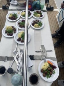 Undervejs i det rolige og dejlige vejr servede Freja og Carlo den svenske nationalret “Köttbullar” til frokost.