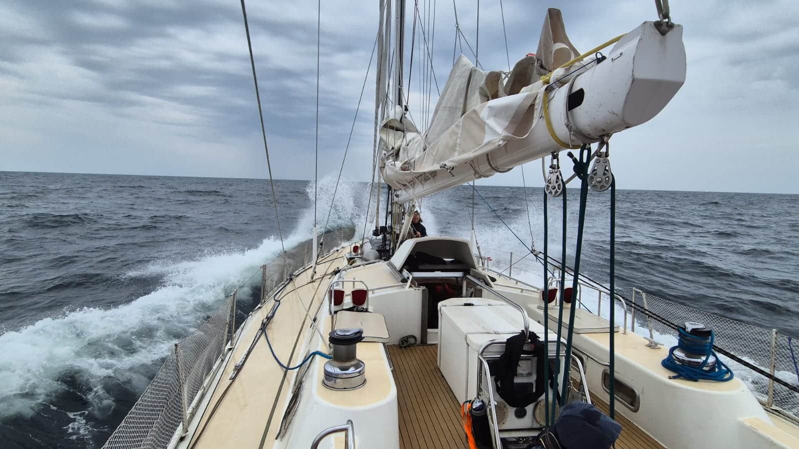 Dagens sejllads bragte en del spænding med sig, da bådens eneste toilet skulle vise sig at blive populært i takt med at størstedelen af besætningen blev søsyge. Alle tog udfordringen med oprejst pande omend aktivitetsniveuet var dalende, som flere valgte, at ta’ en lille lur på dækket i den friske vind for at få lidt farve tilbage i kinderne 🙂