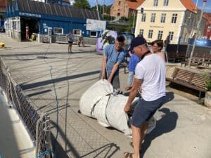 Efter en virkelig skøn dag på havet takkede Josefine og Mette af for denne gang og gik på land. Ombord kom i stedet det nyreparerede storsejl, som Mikkel hentede i Aabenraa i løbet ad eftermiddagen.