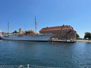 Ved indsejlingen til Sønderborg kom vi forbi både Sønderborg slot og det smukke kongeskib Dannebrog.