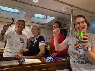 Well there were 11 women and one man Mathis Skydt (Skipper) on board at the beginning. But once we realised there were 5 Danish women professional sailors on board we decided we didn’t need Mathis anymore so we put him in the dingy with some provisions and a GPS