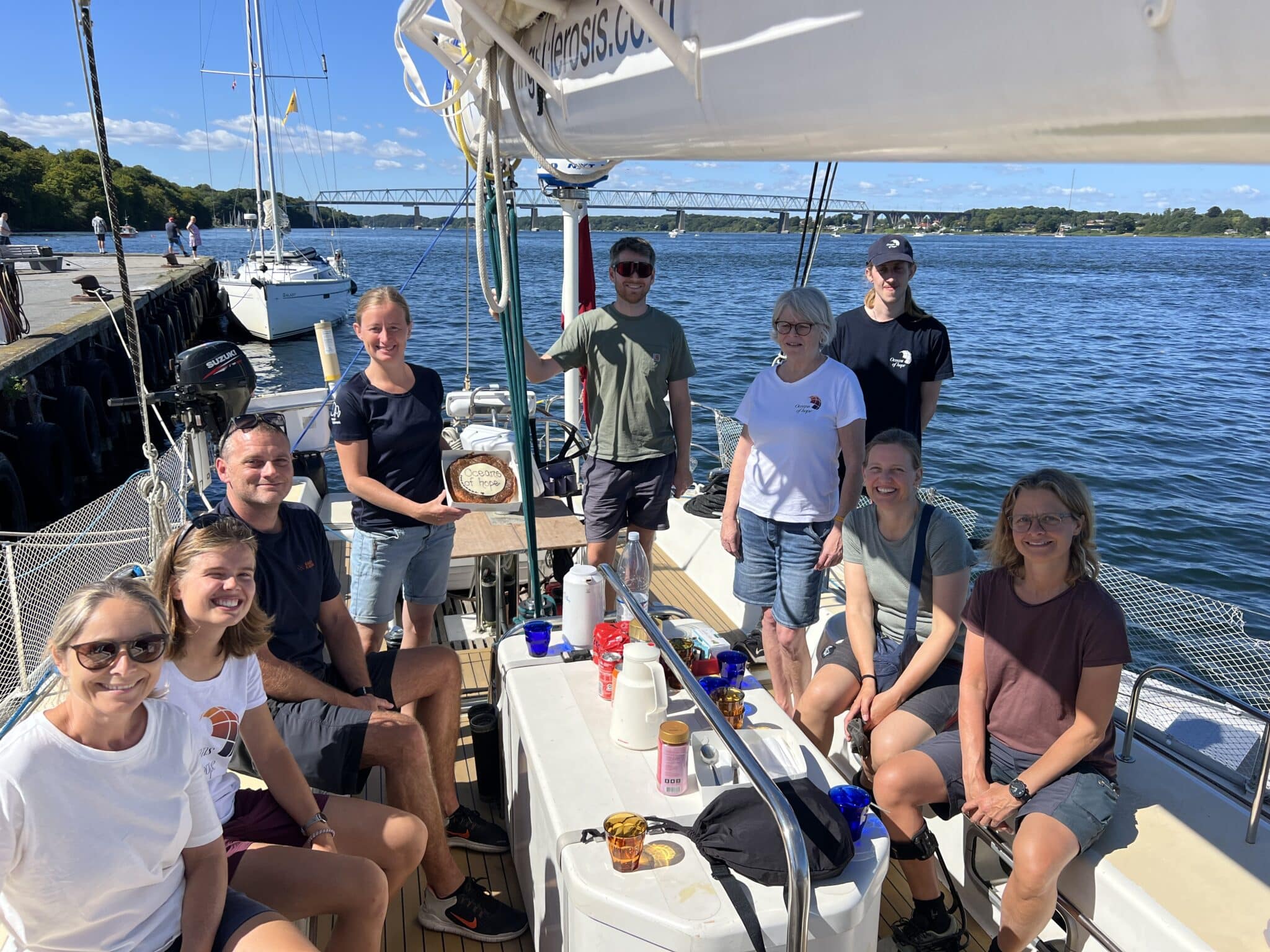 Efter en varm velkomst og en dejlig fynsk brunsviger, blev der handlet ind, pakket væk og gjort klar til at stævne ud. Allerede efter de første minutter på vandet mærkede vi, hvordan energien steg. Det var som om vores indre batterier fik et ekstra skub, bare ved at stå på dækket og være en del af noget større.