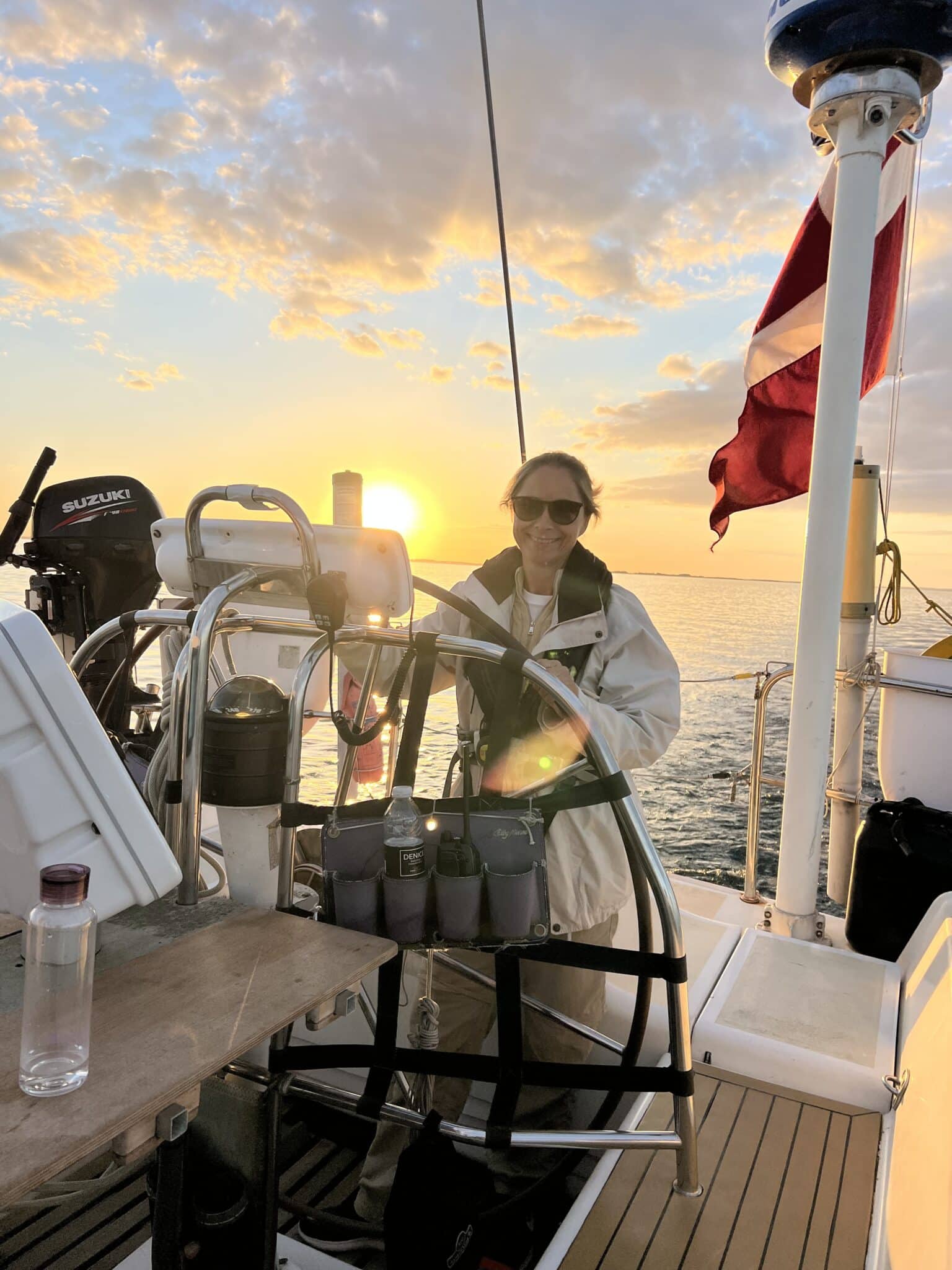 På vej mod Lyø var der smil overalt. Solen stod højt, vinden var mild, og vi fandt hurtigt ind i rytmen sammen. Vi blev belønnet med en helt utrolig smuk solnedgang, hvorefter vi kastede anker og lå for svaj. Aften sluttede af med stjerneskud på en stjerneklar himmel, inden vi gik til køjs med ømme kinder efter dagens mange smil.