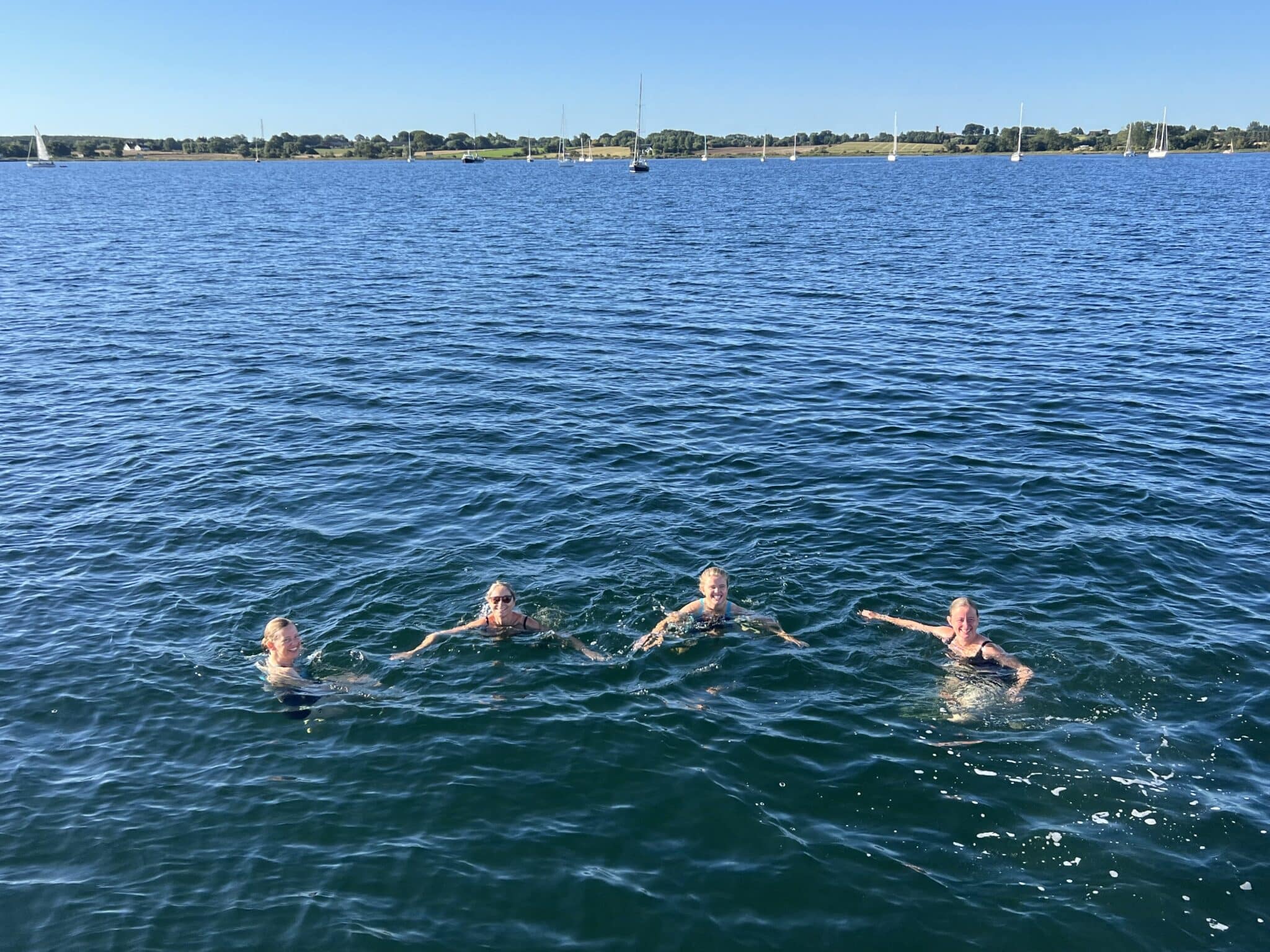 I morges fortsatte vi mod Svendborg efter en frisk dukkert og nybagte boller på dækket. Solen fulgte os igen, og selv om vinden var sparsom, var stemningen høj. Vi tog turen i roligt tempo, og vi mærkede, hvordan hver time på vandet gav mere lyst til at blive ved. Som en af os sagde: “Det er vanedannende.” – havet, fællesskabet og friheden gør noget særligt ved én.
