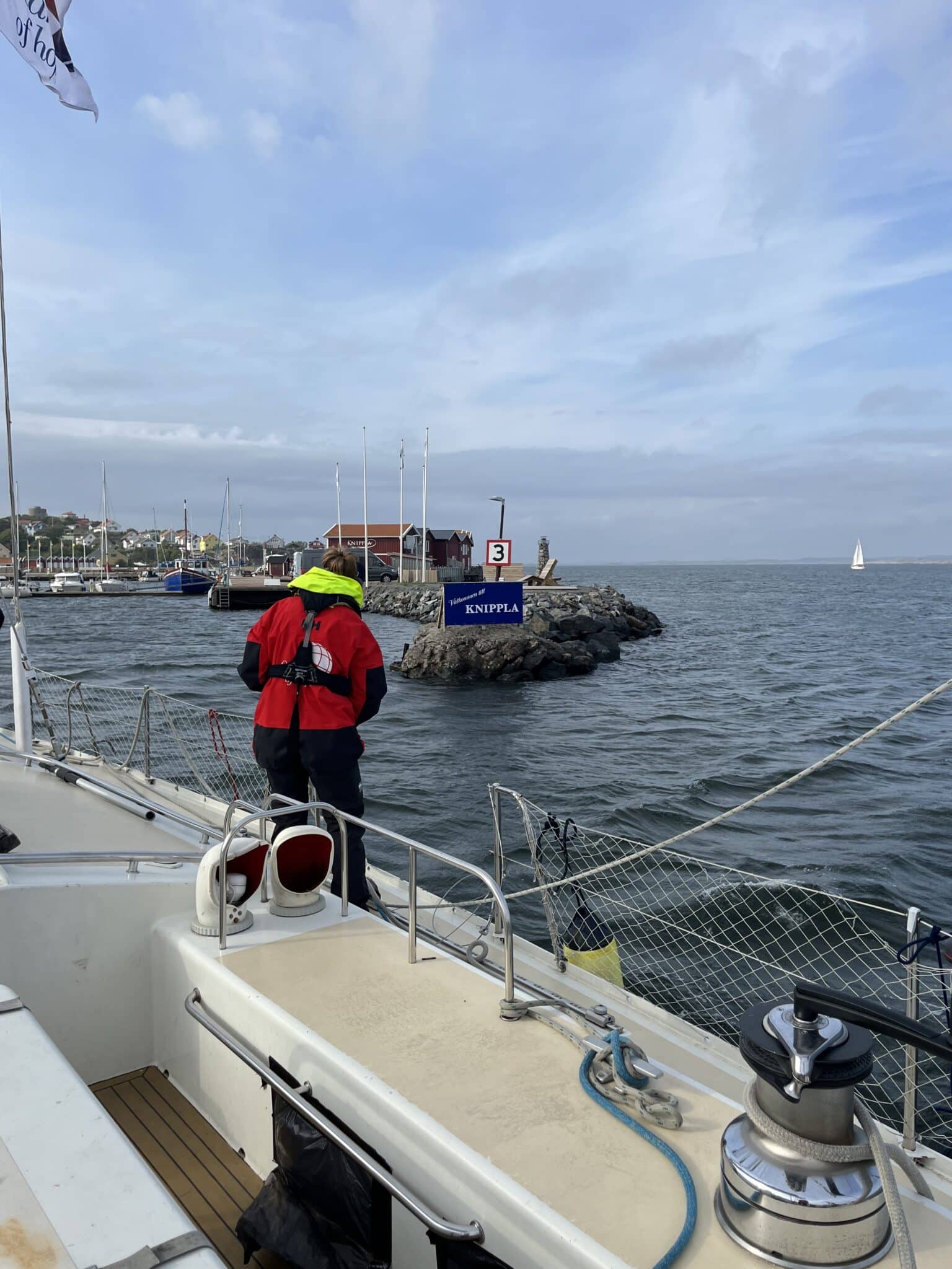 Da alle var blevet briefet, var det tiden til at stikke stævnen mod Knippla igen. Vi havde fantastisk vejr, og fik også sat forsejlet, og kom afsted med det, og så hjælp fra motoren.