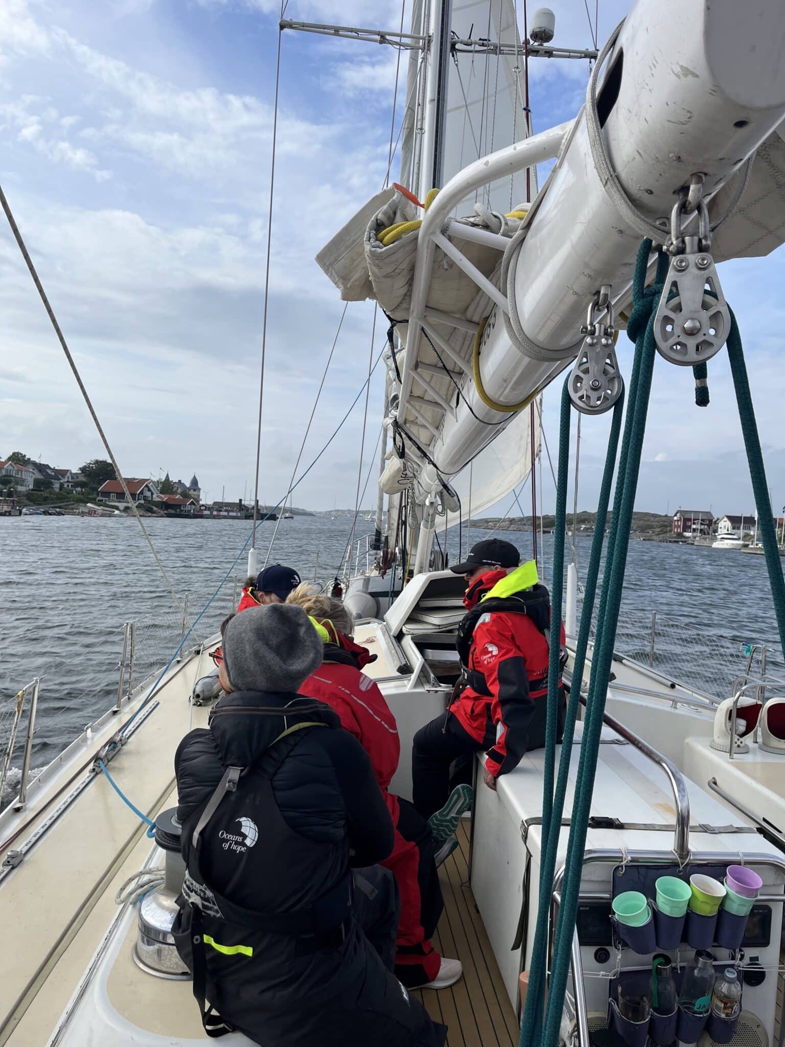 Alle var indkvarteret, kaffen var brygget, det nye flotte sejler tøj var fordelt, så hyggen bredte sig hurtigt. Vi var alle mere end klar til at drage ud på eventyr med Oceans of Hope.