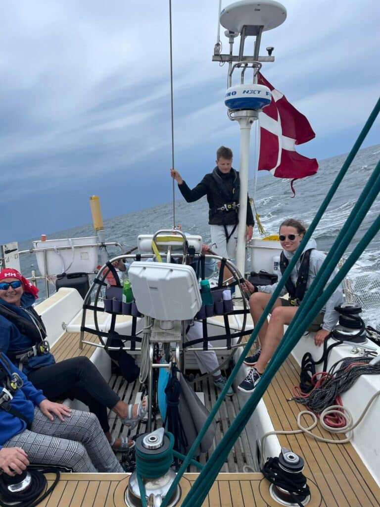 Besætningen består typisk af 8-10 personer, inklusive skipper og to matroser. Som deltager er du en del af en aktiv besætning, hvor vi deles om alle opgaver ombord – sejlads, madlavning, indkøb, rengøring, skrivning af blog mm. Og så har vi det i øvrigt helt fantastisk dejligt.